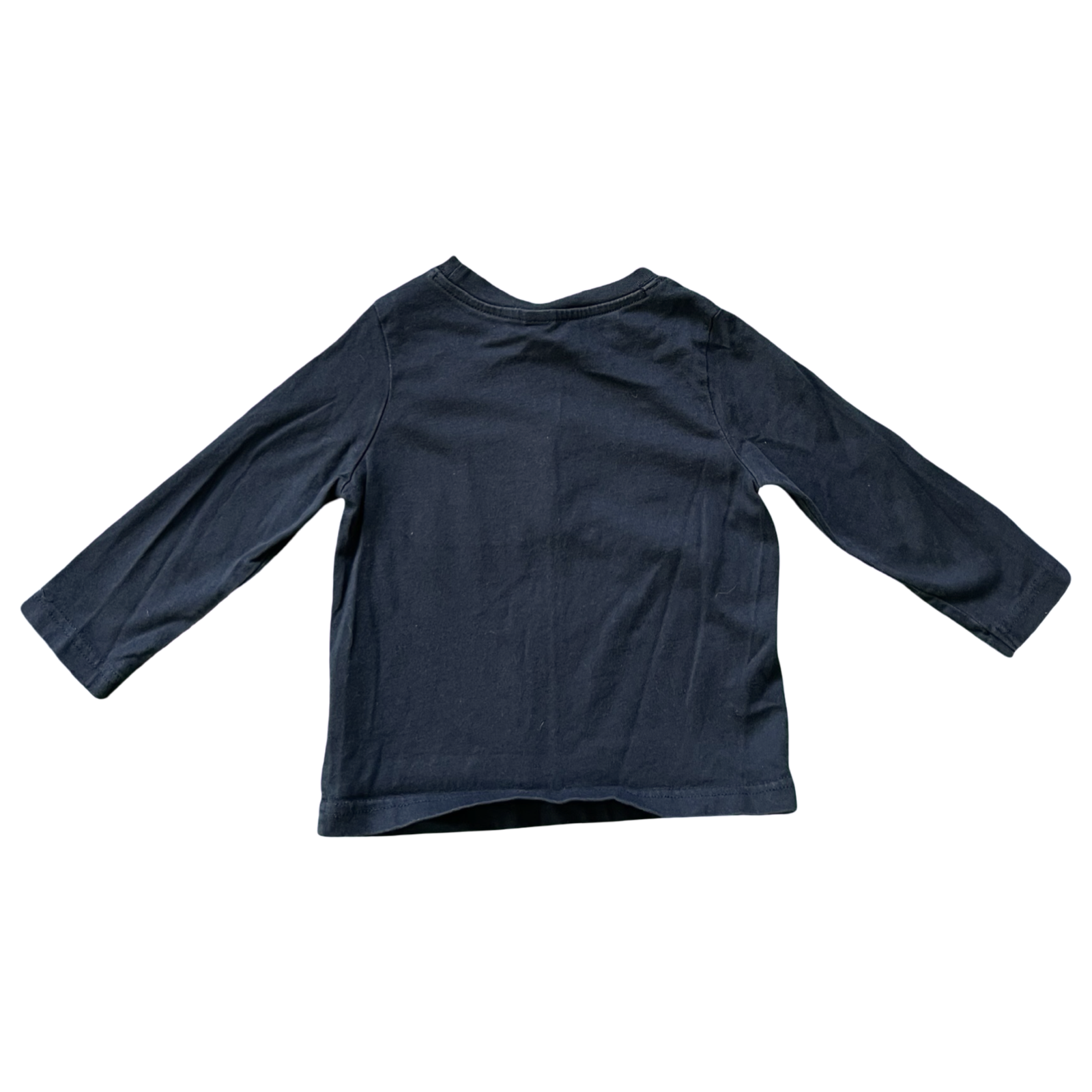 This Janie and Jack long-sleeve top for 18-24 months features a black and red train design. Made from soft cotton, it offers comfort and style for your child.