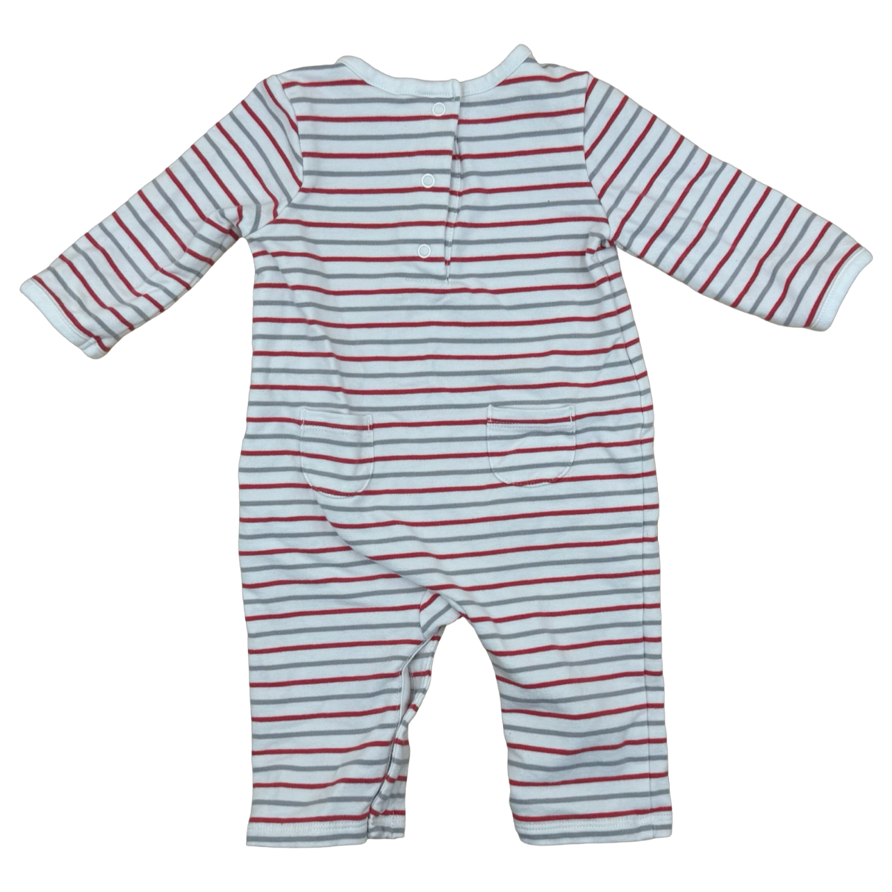 Cozy striped coverall in soft cotton keeps little ones comfortable day and night. The classic red and grey stripes add cheerful style, while the one-piece design makes dressing and diaper changes a breeze. Perfect for newborns through 3 months.