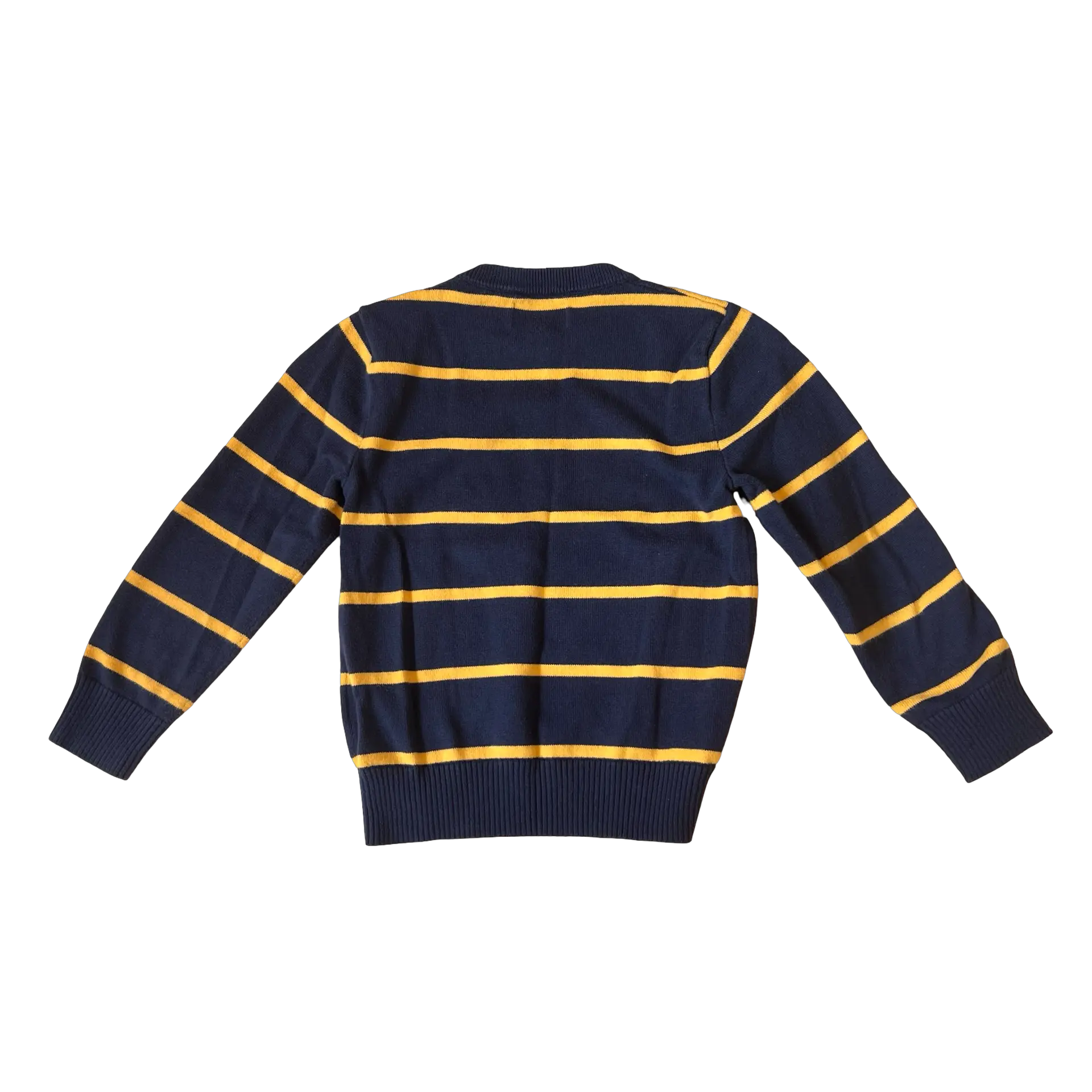 Keep cozy and stylish with the Ralph Lauren Polo Varsity Sweater for kids. Perfect for back-to-school days, this navy cotton sweater feels soft and looks sharp. Like new and ready to brighten up any outfit!