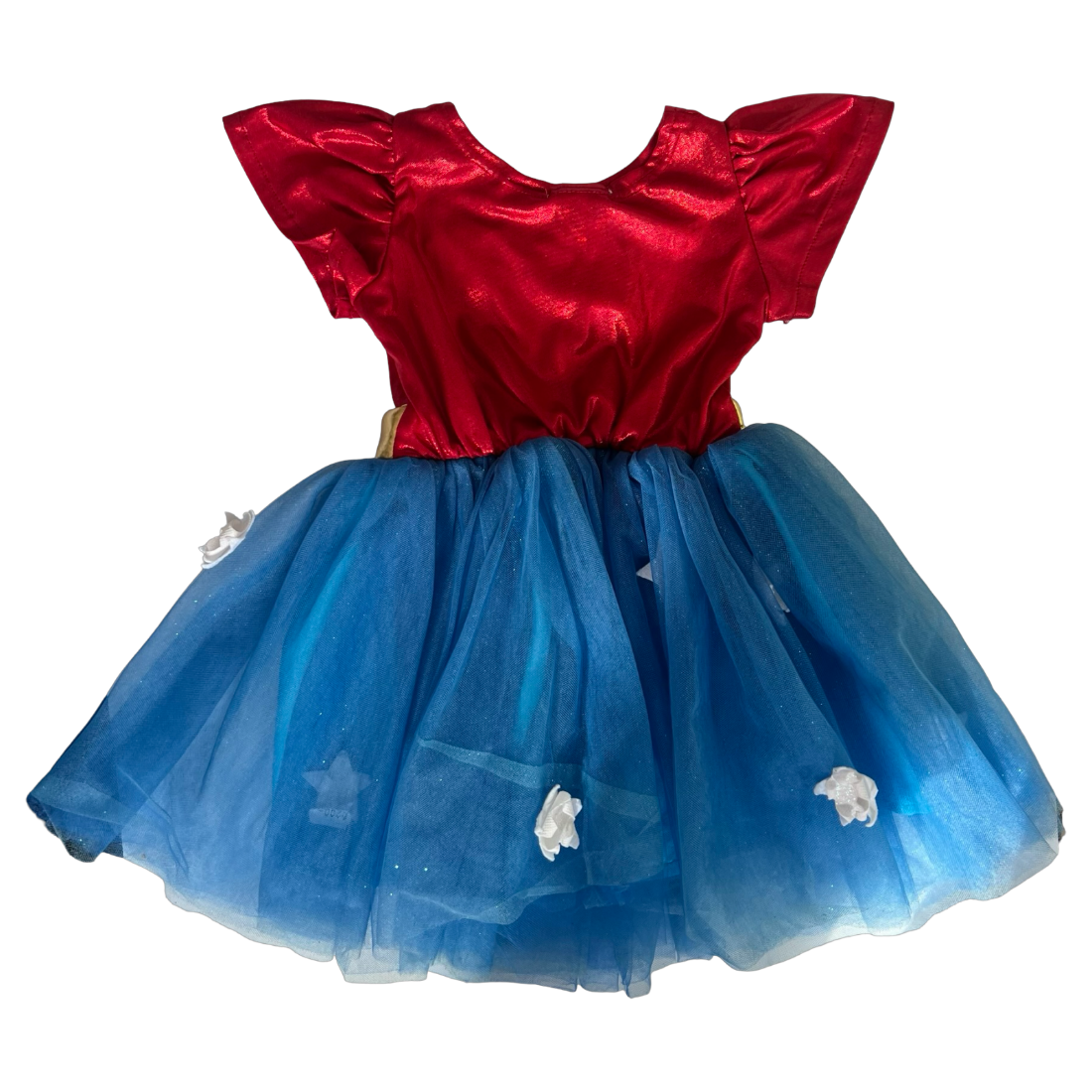 Dress up your little hero with this playful Wonder Woman costume from Pottery Barn Kids. Perfect for Halloween fun, it features bright red and blue colors, sized for 3-year-olds.