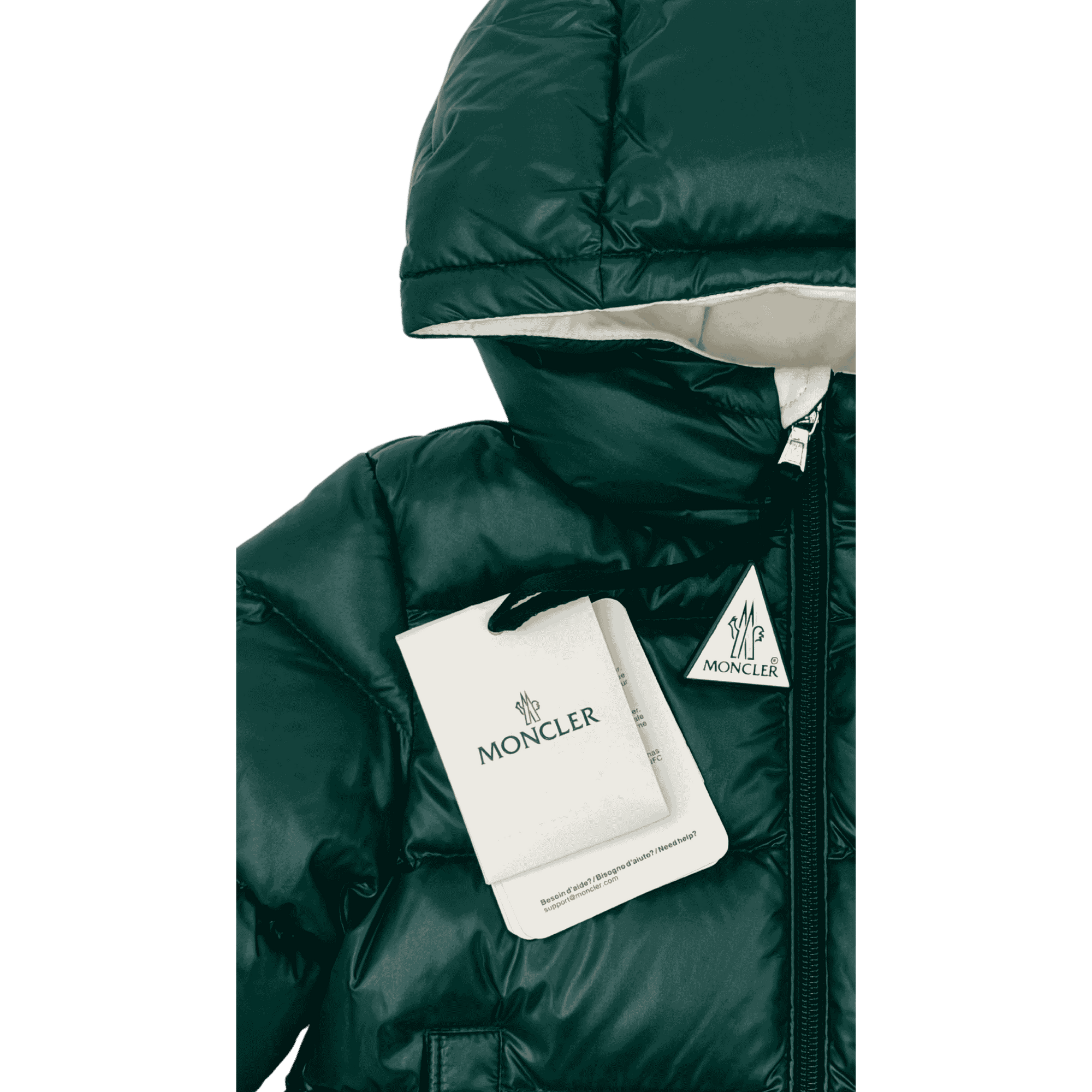 This vibrant Moncler Green Arslan Jacket for 3-year-olds is brand new with tags, crafted from durable polyester to keep little adventurers cozy and stylish. Perfect for playful days and cool weather fun!