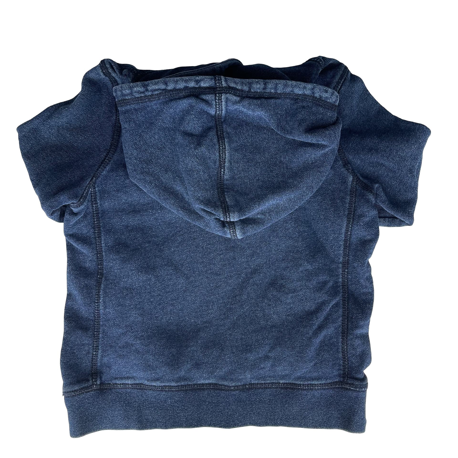 Blue hoodie from 7 For All Mankind in size 5Y. Made with a cozy cotton-polyester blend, it's ideal for keeping kids warm and comfy. This gently worn piece has a small stain on the cuff, proof it's been loved and ready for more fun adventures!