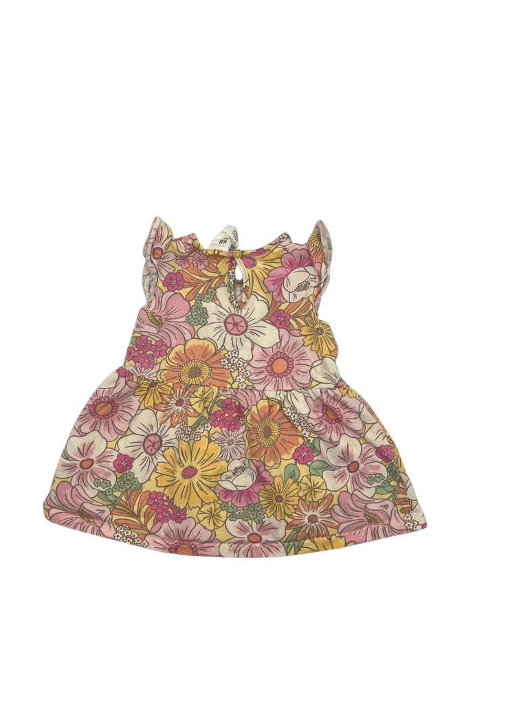 This charming H&M floral sleeveless dress for 9-month-olds is a playful addition to any little one's wardrobe. Made from soft cotton and gently used, it is perfect for hot days in the park or backyard.