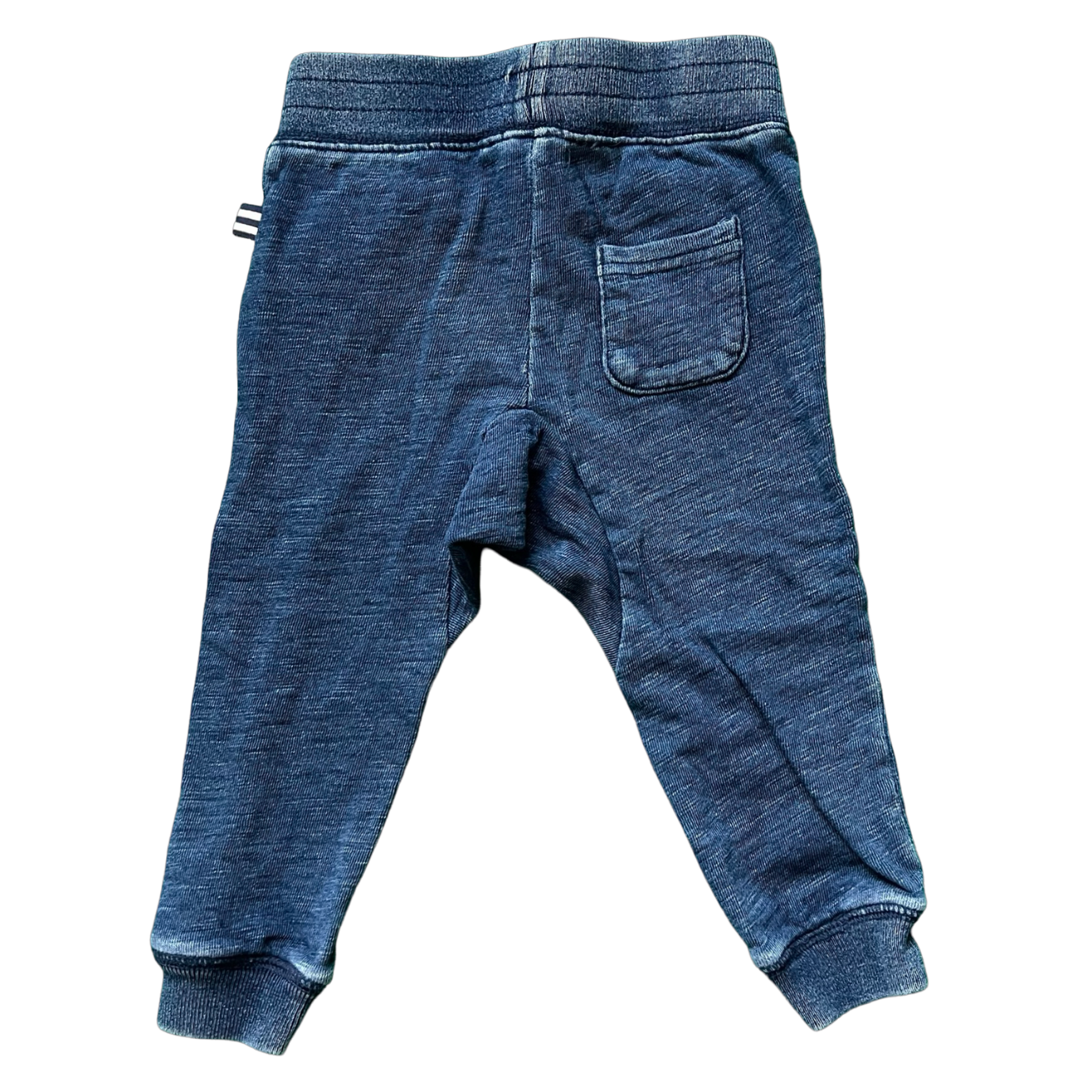 Comfortable blue joggers for babies 18-24 months, made with soft cotton and spandex for easy movement.