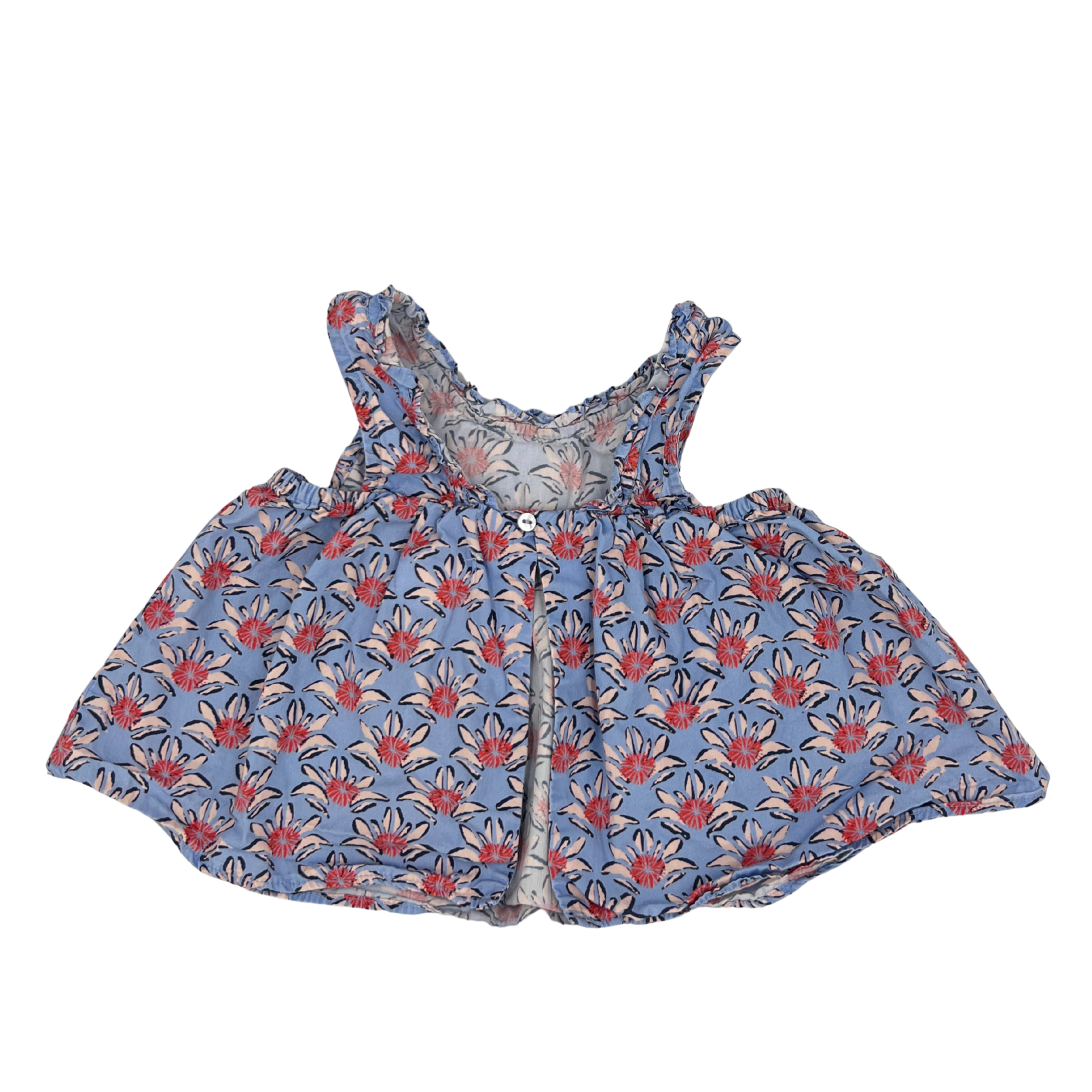 This Zara Floral Tank for ages 2-3 years is a charming blue top featuring a fresh floral pattern. Made from soft cotton, it’s in like-new condition and perfect for little trendsetters who love playful style.