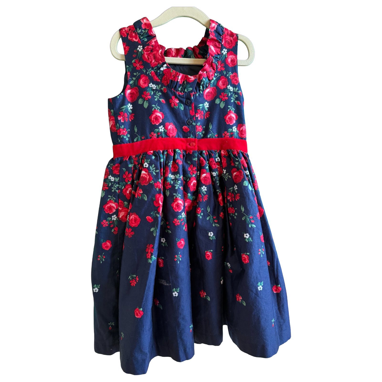 A classic Janie and Jack rose dress in size 5Y, featuring a charming red and blue design. Crafted from cotton in like-new condition, this holiday-ready piece combines timeless style with quality construction.