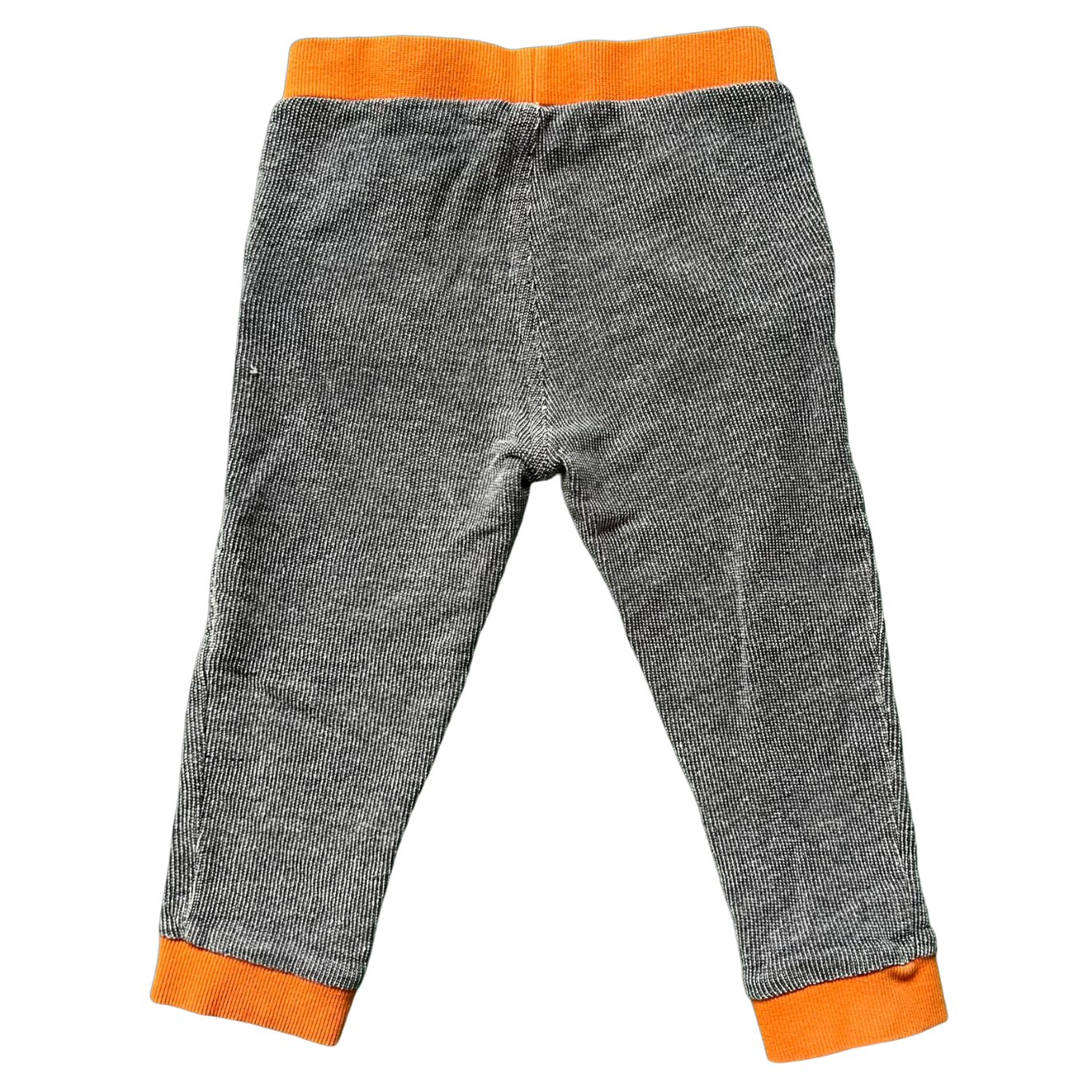 Comfortable Marimekko knit joggers for toddlers, featuring durable cotton fabric with stylish orange trim. Ideal for everyday wear with a soft, flexible fit.