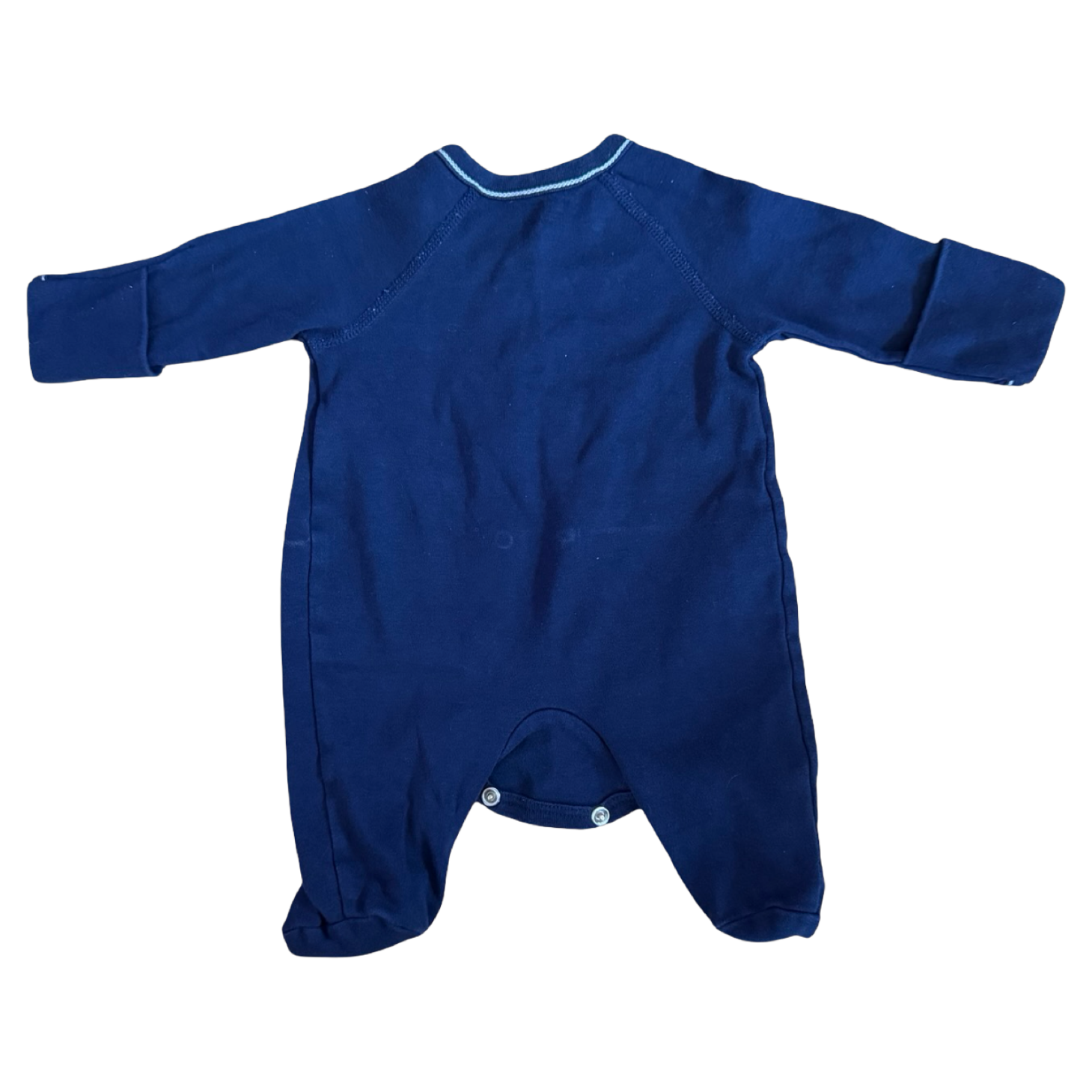 Snuggle-ready navy onesie from Ralph Lauren featuring cozy cotton and charming white contrast stitching. The perfect one-piece for newborn bedtime comfort.